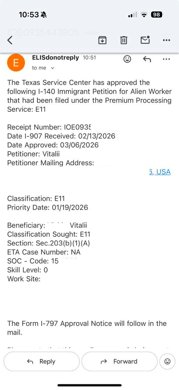 Одобрения по визе талантов США